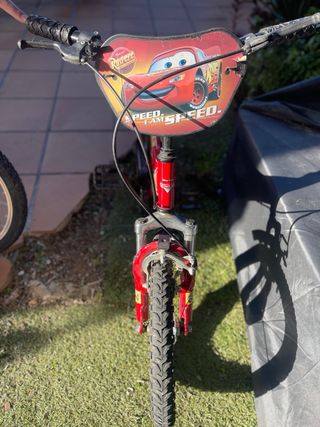 Bicicleta infantil de color rojo con diseño de Cars. - Ruedas de 16 pulgadas. - Freno delantero y trasero. - Guardabarros delantero y trasero. #bici roja