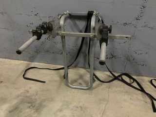 Portabicicletas diseñado para ser montado en la rueda de repuesto externa de un vehículo. Permite transportar bicicletas de forma segura. - Estructura metálica. - Soportes ajustables para las bicicletas. - Correas de sujeción incluidas.