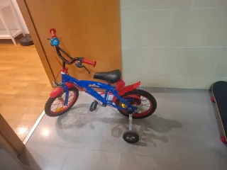 Bicicleta infantil de Spiderman con ruedas de 14 pulgadas. - Diseño inspirado en Spiderman. - Incluye ruedines para facilitar el aprendizaje. - Frenos manuales.