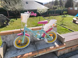 Necesita una puesta a punto, ajustar frenos, inflar ruedas... pero funciona bien en general. Bicicleta infantil de 14 pulgadas con diseño de Peppa Pig. Ideal para los más pequeños. - Color azul y rosa. - Incluye cesta delantera. - Sillín y asiento trasero. - Ruedas con llantas amarillas.