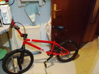 Bicicleta BMX de color rojo, ideal para quienes buscan una bici para trucos o desplazamientos urbanos. Se vende por falta de uso. - Cuadro de acero. - Ruedas de 20 pulgadas. - Frenos V-brake.