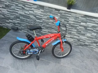 Bicicleta infantil con temática de Spiderman, ideal para los más pequeños. - Ruedas de 14 pulgadas. - Incluye ruedines para facilitar el aprendizaje. - Diseño llamativo en azul y rojo con gráficos de Spiderman.