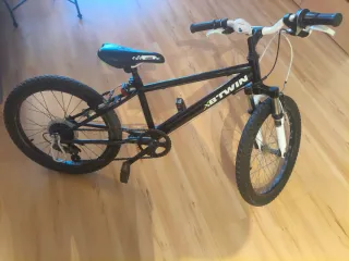 Bicicleta de montaña infantil BTWIN RB5. - Ruedas de 20 pulgadas. - Color negro y blanco. - Tiene bastante uso uñy algunos arañazos. Por lo demás funciona correctamente.