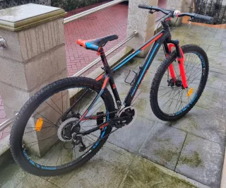 Bicicleta MMR Kendo con cuadro de aluminio y horquilla Rock Shox. -Talla S-M . Mido 1'69 yo - Cuadro de aluminio. - Horquilla Rock Shox. - Ruedas Mavic Crossmax. - Neumáticos Maxxis Ikon y Schwalbe. - Frenos de disco hidráulicos.