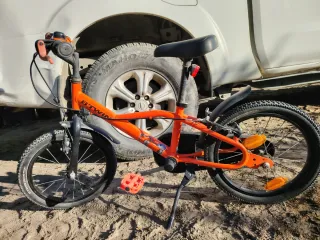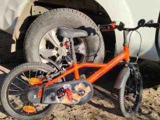 Bicicleta infantil de color naranja, ideal para los más pequeños. - Ruedas de 16 pulgadas. - Frenos delanteros y traseros. - Sillín ajustable. - Reflectores en ruedas y pedales.