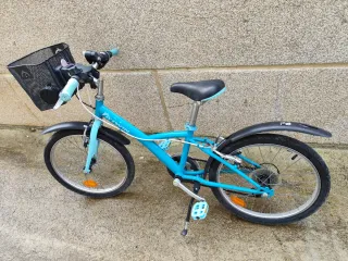 Bicicleta infantil Btwin en color azul, ideal para los más pequeños. - Cesta delantera. - Guardabarros delantero y trasero. - Ruedas de 20 pulgadas. Se tienen que revisar los cambios