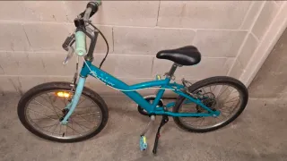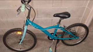 Bicicleta BTWIN de 20 pulgadas, ideal para niñas. Cuenta con sistema de cambio para facilitar el pedaleo. - Color azul turquesa. - Ruedas de 20 pulgadas. - Sistema de cambio de marchas. Se ha usado muy poco porque no le gusta andar en bici