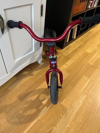 Bicicleta de equilibrio de la marca Chicco, ideal para niños de 2 a 5 años. Su diseño en color rojo la hace muy llamativa. - Manillar con puños de goma para un mejor agarre. - Rueda delantera de goma. - Asiento ajustable.