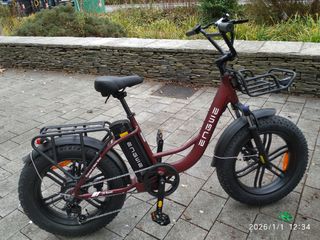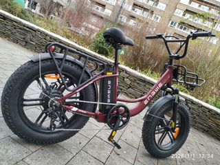 Comprada nueva en enero de 2026. Tengo factura,solo dos cargas de bateria, ruedas de 20/4.0 unos 100km de autonomia a nivel de asistencia al pedaleo 1, 7 velocidades con cambio shimano, luz delantera, trasera y de freno, motor de 250w y 25km/h. 5niveles de asistenciaal pedaleo por sensor de par. Frenos de disco y amortiguador delantero. Bateria de litio de 48V/13Ah. Parrillas delantera y trasera