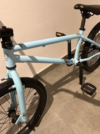 Bicicleta BMX Mongoose en color azul celeste. - Cuadro resistente. - Manillar negro. - Ruedas negras.