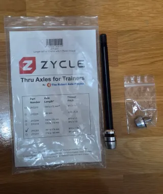 Eje pasante Zycle ZYC201 para rodillo de entrenamiento. Diseñado por The Robert Axle Project. - Longitud: 167 a 174 mm. - Rosca: M12 x 1.75