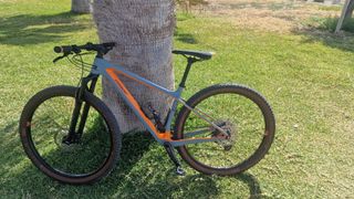 La bici se compró en junio de 2023 y no se ha usado apenas. El cuadro es de aluminio, tiene tija telescópica con 125mm de recorrido, guardabarros delantero fox, neumáticos maxxis dissector delantero y rekon trasero, ambos de 29”. Lleva más o menos un año sin usarse.