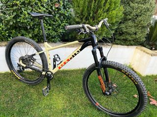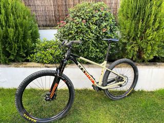 Bicicleta Canyon Lux Trail CF7 en color beige. Año 2022 En perfecto estado de uso. Cambio Sram Inalámbrico. Manillar de carbono Integrado. Tiene algunas picadas la pintura del cuadro. - Cuadro de carbono talla S. - Mido 1,72m. - Horquilla FOX 34 Float Step-Cast Performance Elite, 120mm recorrido. - Amortiguador FOX Float DPS Performance Elite, 210x55mm - Cambio Sram GX Inalámbrico - Frenos Shimano XT - Plato y bielas Shimano XT - Tija Telescópica FOX Transfer SL Performance élite. - Ruedas de 29 pulgadas. Syncros Silverstone nuevas. - Cubiertas Maxis Recon Race Nuevas - Manillar integrado On-Off con soporte para ciclocomputado
