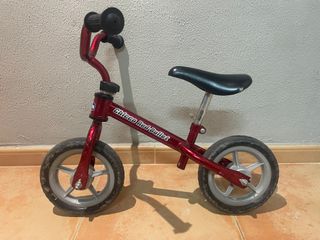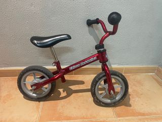 Bicicleta de equilibrio Chicco Red Bullet en color rojo. Ideal para que los peques aprendan equilibrio antes de pasar a una bici con pedales. Es muy ligera, estable y fácil de manejar. Tiene el uso y desgaste normales teníendo en el sillín dos pequeñas picadas que no afectan en nada a la funcionalidad (se ven en las fotos). Siempre guardada en interior. - Marco de metal. - Ruedas de goma. - Asiento ajustable.