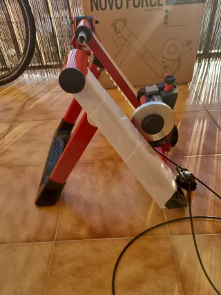 Rodillo de entrenamiento Elite Novo Force, con Elastogel y Misuro B+. - Estructura robusta de color rojo. - 8 niveles de resistencia, selecionando desde el manillar. - Sensor Elite Misuro B+, con el que se puede monotorizar la sesión de entrenamiento. - Adaptador Elite para eje trasero boost. - Base estable para mayor seguridad.