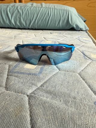 Gafas de sol Oakley Sutro en excelente estado, con muy poco uso. - Diseño deportivo y moderno. - Lentes con acabado espejo azul. - Montura transparente. - Incluye funda protectora y bolsa. - Escucho ofertas