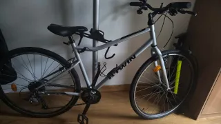 Bicicleta de montaña Rockrider ST 520 en color gris, casi nueva. - Cuadro de aluminio. - Frenos de disco. - Ruedas de 27.5 pulgadas. - Suspensión delantera. -Camara de aire extra. -Inflador de ruedas portable. -Casco de bici.
