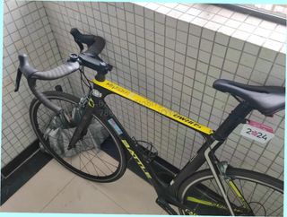 Bicicleta de carretera de la marca Battle, con un diseño deportivo y llamativo. - Cuadro de carbono. - Ruedas de 700c. - Manillar de carretera. - Sillín deportivo.