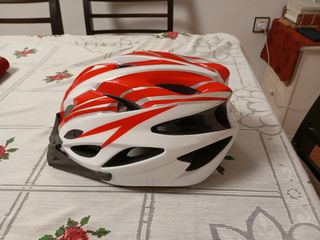 Casco Mujer/Hombre. Nuevo sin uso. En color Blanco y Rojo con visera color negro. Casco transpirable, muy bien ventilado con visera desmontable y ruleta de ajuste. Talla M/L. Liviano, Seguro y muy resistente a cualquier tipo de impactos. Su consulta no molesta.
