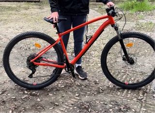 Bicicleta de montaña con un llamativo color naranja. Ideal para disfrutar de rutas y caminos. - Cuadro de aluminio. - Ruedas de 29 pulgadas. - Suspensión delantera. - Frenos de disco.