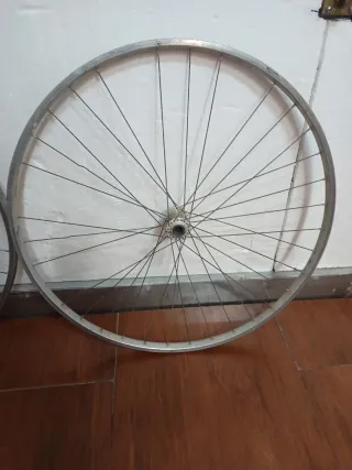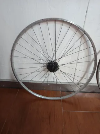 Llanta de bicicleta de carretera con piñonera incluida. Lista para instalar. - Llanta de aluminio. - Radios de acero. - Piñonera de varias velocidades. - A la rueda delantera le falta el buje. - El precio es de las 2.