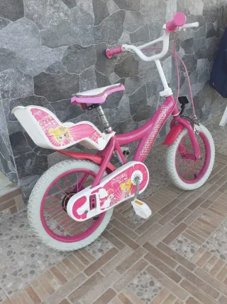Bicicleta infantil de color rosa, ideal para niñas. Con porta muñecas - Asiento y manillar ajustables.
