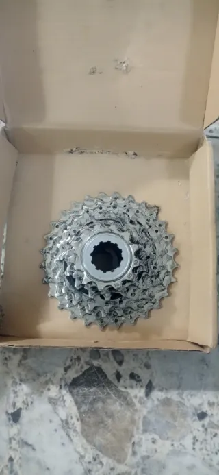 Cassette de 10 velocidades para bicicleta, se ha usado en el rodillo. - Compatible con sistemas de 10 velocidades. - Fabricado en metal plateado. - piñones de 11/28 .