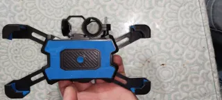 Soporte universal para móvil, ideal para motocicletas, bicicletas o patinetes eléctricos. Su diseño permite un ajuste seguro y firme. - Construcción robusta en plástico y metal. - Color azul y negro.