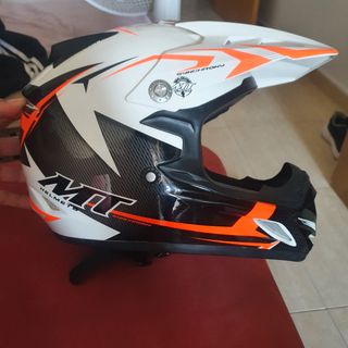 Casco de moto MT Helmets modelo Synchro, en perfecto estado. - Diseño moderno y deportivo en blanco, negro y naranja. - Incluye visera. - Talla M - 51-52 cm