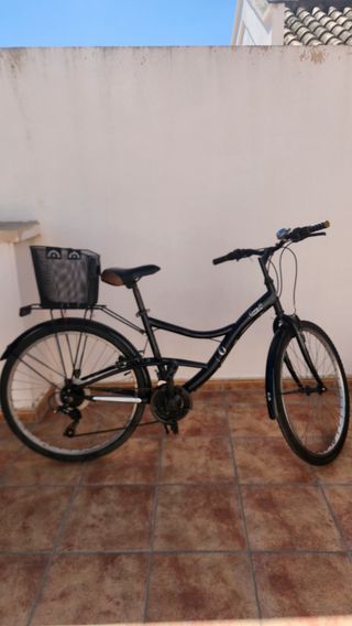 Bicicleta de montaña Rockrider en buen estado. Ideal para paseos por la ciudad o montaña. - Modelo Rockrider. - Color negro. - Suspensión delantera. - Llantas en perfecto estado. Regalo manillar largo y funda asiento de gel.