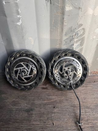Se venden dos ruedas de bicicleta de montaña (MTB) de 26 pulgadas. Están usadas pero en buen estado. - Marca: rochrider - Llanta de aluminio - Para freno de disco - Incluyen cubiertas
