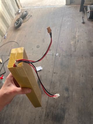Batería de 36V 8,8 Ah con cables de conexión. La bateria es la original del patinete E-Town EXTZE7 Tiene quitada la funda azul pero funciona perfectamente, siempre cuidada y con los ciclos de cargas correctos - Voltaje: 36V - Cables de conexión incluidos.