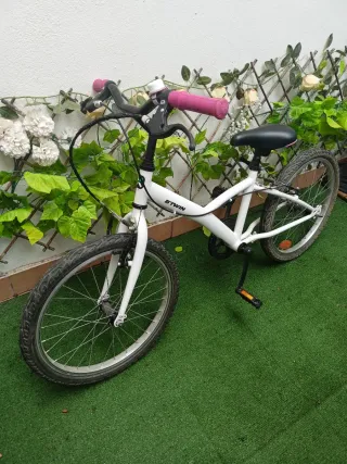Bicicleta infantil de la marca Btwin, ideal para los más pequeños. Ruedas prácticamente nuevas. Sillín igual que nuevo. Muy poco uso. - Color blanco. - Ruedas de 20 pulgadas. - Frenos. - Timbre rosa.