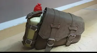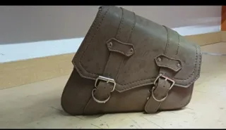Alforja de cuero para basculante nueva a estrenar, con un diseño clásico y resistente, ideal para motocicletas. de color marrón-tabaco , con un diseño funcional. Ideal para llevar tus pertenencias en tus rutas. - Material: Cuero. - Cierre con hebillas. -suplemento para botella 1 litro de quita y pon -25cm alto, 10 cm grosor, 25cm anchura, 15cm alto en la parte baja. - Costuras reforzadas.