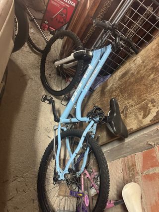 Bicicleta de montaña de color azul, ideal para paseos y rutas. - Cuadro de aluminio. - Ruedas de 26 pulgadas. La bici tiene algunos años,pero las ruedas están nuevas y en general un buen estado.