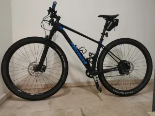 Bicicleta de montaña Mérida Big Nine 5000. - Cuadro de carbono. - Talla M. - Ruedas de 29 pulgadas. - Comprada en 2018 - Costo 1600€ en BICISPASAJE.COM, dispongo de factura. -En muy buen estado, sin caídas ni problemas, solo signos de desgaste exterior en la vielas, llantas y suspensión. -Todas las revisiones en taller -Cubiertas casi nuevas, Vittoria BARZO 2.35 -Pedales Look -Cambiado recientemente Cassette, plato 34' . y cadena por desgaste. Suspensión delantera 100mm Fox Performance Float 32 Ruedas 29″ Aluminio transmisión 1 × 11 GRUPO XT,SLX Manetas DE Frenos Shimano XT Disco Hidráulico Peso 10,8 kg