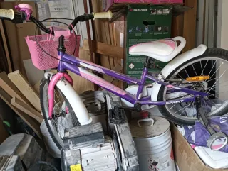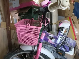 Bicicleta para niña con un diseño llamativo en morado y rosa. - Cesta delantera rosa. - Puños blancos. - Sillín con detalles morados y rosas. - Timbre rosa. Se vende bicicleta de niña con cesta timbre sirve de a partir de unos 4 años hasta los 12 está bastante nueva se la pusimos por reyes el año pasado y la habrá cogido un par de veces solo por mi casa no ha salido ni ala calle el precio no es negociable
