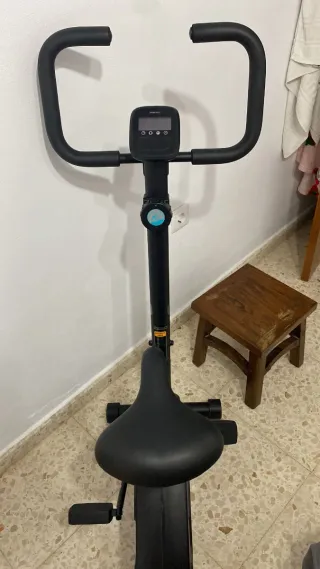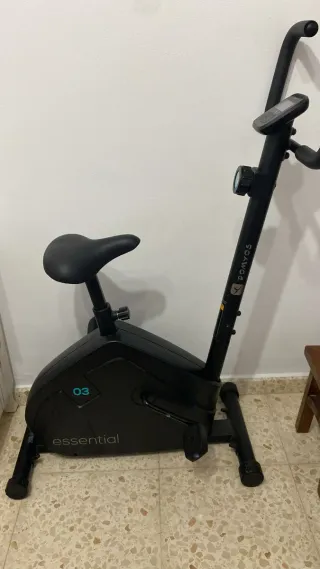 Bicicleta estática Domyos Essential 03 en color negro. Diseñada para entrenamientos en casa. - Marca: Domyos - Modelo: Essential 03 - Color: Negro - Pantalla digital integrada