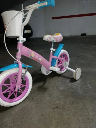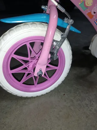 Bicicleta infantil de Peppa Pig en excelente estado, casi sin uso. - Color rosa y azul. - Ruedas blancas con llantas rosas. - Guardabarros delantero azul.