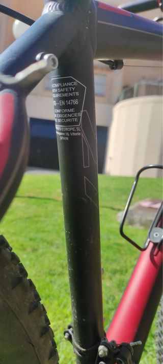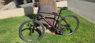 Bicicleta de montaña TREK 27” para adulto, ideal para paseos y rutas. Cambio por patinete eléctrico para adulto. - Cuadro robusto. - Ruedas todoterreno. - Diseño deportivo en negro y rojo.