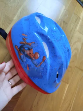 Casco de protección para niños con diseño de Spiderman. - Color azul con detalles rojos. - Estampado de Spiderman y telarañas. - Aberturas para ventilación.