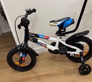 Bicicleta infantil Joystar de 12 pulgadas, ideal para los más pequeños. Está lista para estrenar. Precio de compra 132€ - Diseño deportivo con detalles en azul, blanco y naranja - Incluye ruedines para facilitar el aprendizaje. - Sillín ajustable en altura. - Empuñaduras de goma para un mejor agarre. Realizado Puesta a punto taller por valor de 30€ , vendo porque mi niño prefiere sin pedales Palo de sujecion y empuje adulto NO INCLUIDO