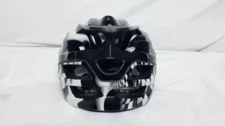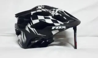 Casco de ciclismo Fox Flux con un diseño llamativo. - Diseño a cuadros blanco y negro. - Marca: Fox. - Modelo: Flux.
