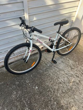 Bicicleta infantil Btwin de color blanco. - Ruedas de 20 pulgadas. - Frenos delanteros y traseros. - Sillín ajustable. - Repasar frenos