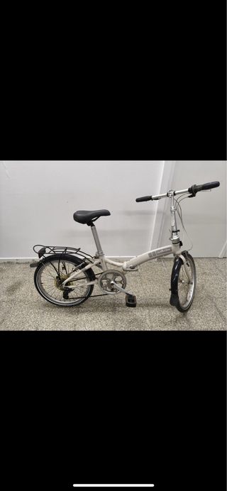 Bicicleta plegable de la marca DAHON, ideal para desplazamientos urbanos o para llevarla contigo a donde vayas. - Color: Plateado - Ruedas pequeñas - Portaequipajes trasero - Pata de cabra