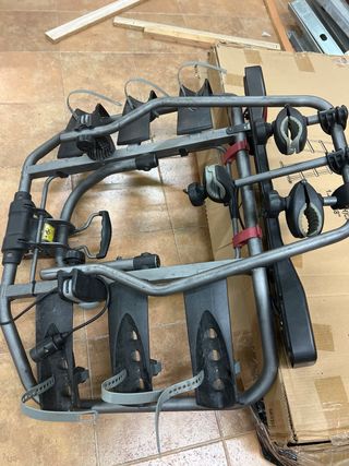 Portabicicletas de la marca Norauto, diseñado para transportar bicicletas. - Estructura metálica. - Soportes para bicicletas. - Sistema de fijación. -Llave de seguridad para elmportabics y para las bicis -Hay que canviar algunos agarres de las ruedas