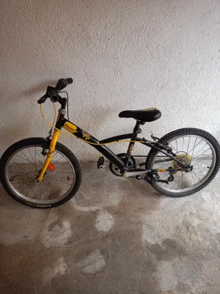 Bicicleta infantil Btwin en color negro y amarillo. - Ruedas de 20 pulgadas. - Frenos delanteros y traseros. - Sillín ajustable.