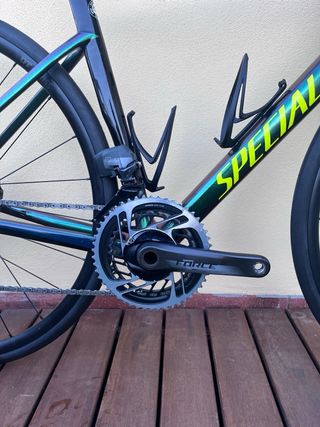Bicicleta de carretera Specialized Tarmac Expert SL6. - Talla 54 - Grupo Sram Force - Platos Sram Red 50-35 - Cassette Sram Red 10-33 - Ruedas nuevas DT Swiss R470 - Discos y pastillas nuevos Sram - Sillín Prologo Nack Carbon nuevo - Manillar S-works Aerofly 42cm - Potencia S-works 90mm