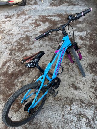 Bicicleta infantil Megamo 20 pulgadas Indico en el estado que esta como nueva porque ha sido muy bien cuidada y se encuentra en muy buen estado, pero ha sido usada, poco, pero no esta nueva de tienda. En la ultima foto se ve un arañazo en la pegatina - Cuadro de aluminio ligero. - Ruedas de 20 pulgadas. - Frenos V-Brake. - Sillín ajustable. La bicicleta ha sido usada en contadas ocasiones, muy bien conservada, se encuentra en muy buen estado