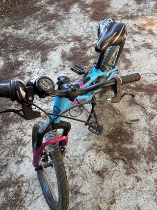 Bicicleta infantil con un divertido diseño. Costo 159€ fue un regalo de Reyes pero tiene otra y no la usa. - Color principal: turquesa y rosa. - Incluye cesta delantera. - Ruedines de apoyo. - Sillín y puños decorados con flores.
